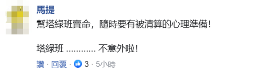 还有网友直言,“帮‘塔绿班’卖命,随时要有被清算的准备!”